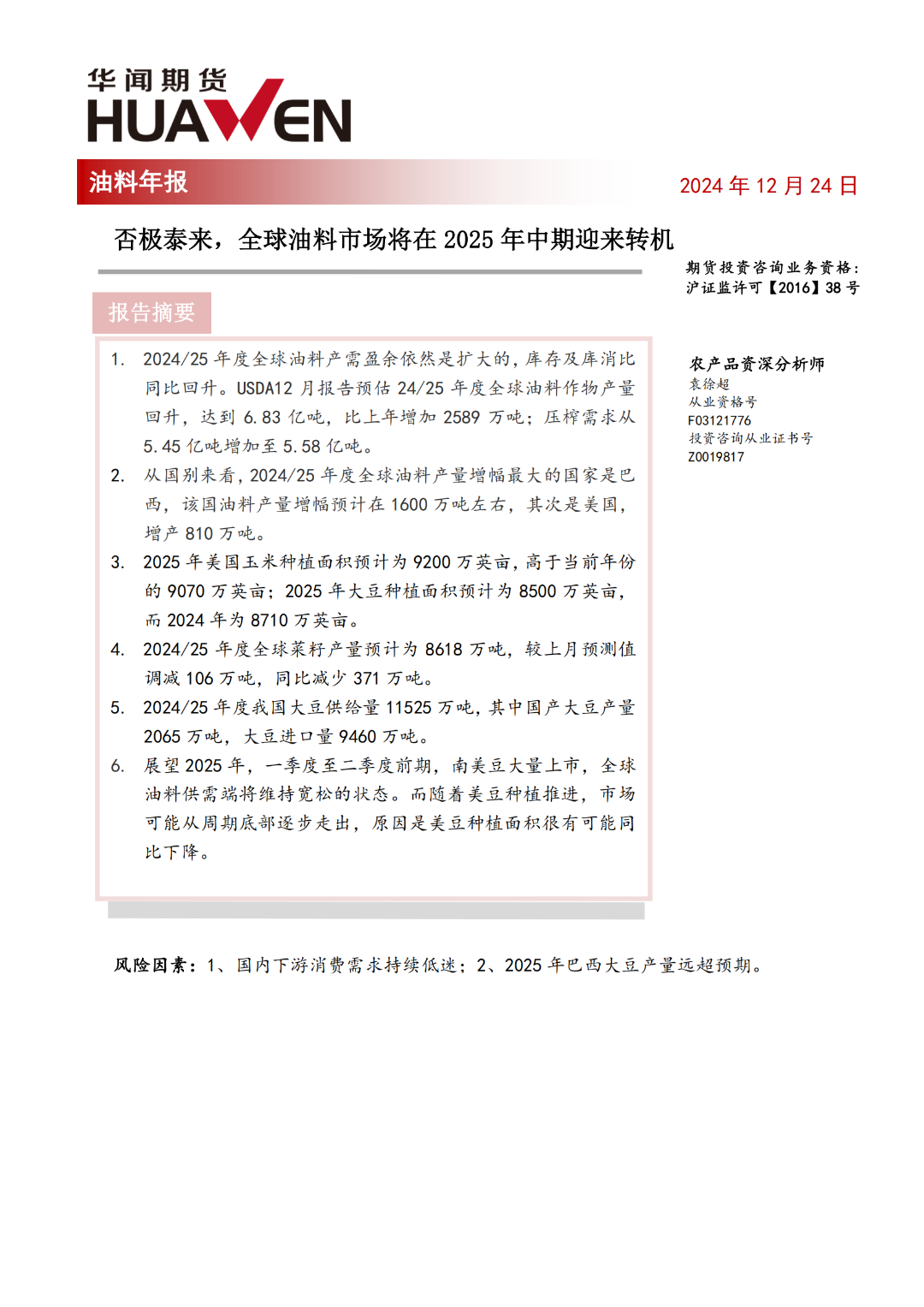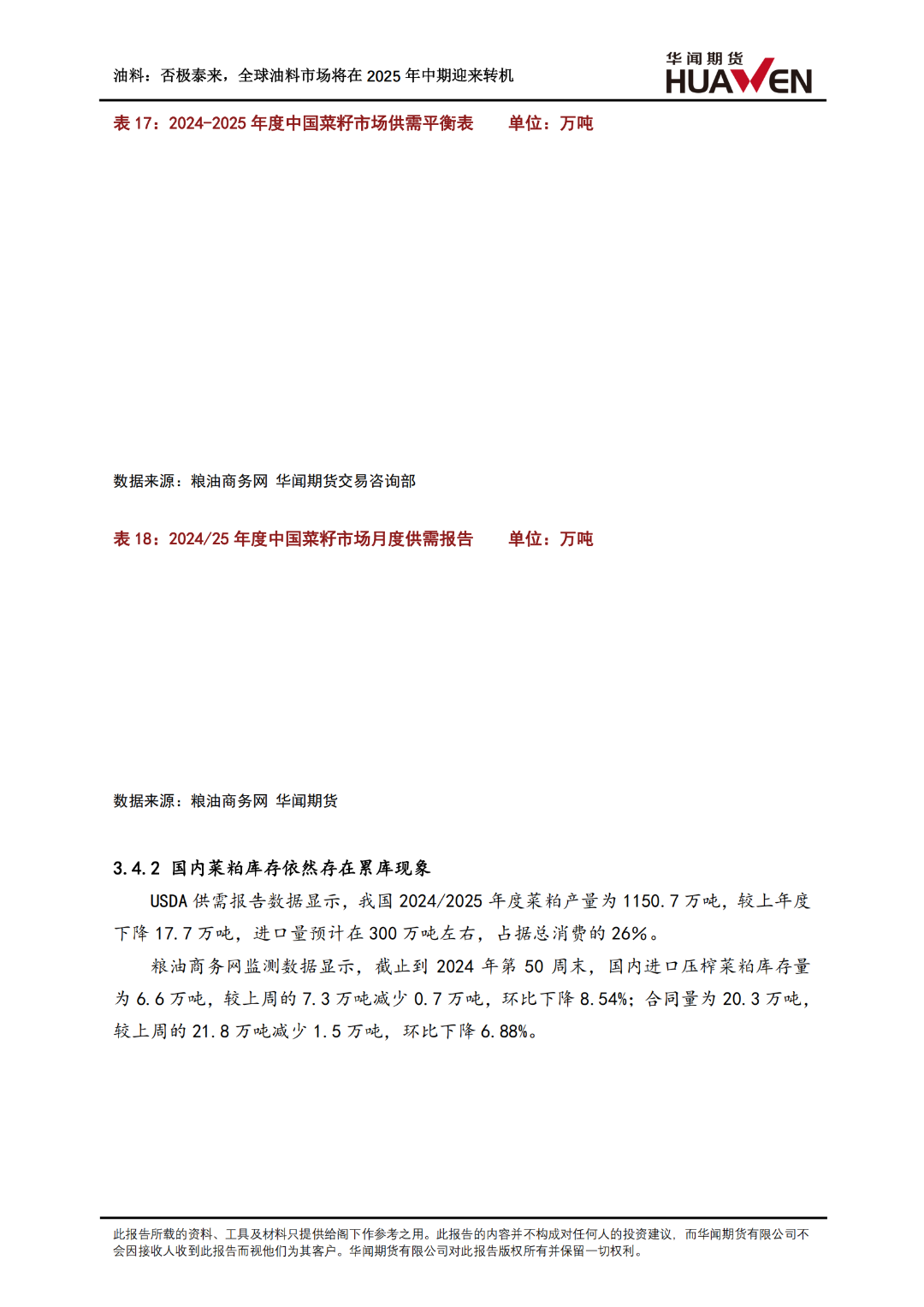 三、油脂市场:站在估值的维度,我们认为今年全球油脂年度库存预期与去年相仿,当下油脂宽松的预期大部分已被交易,后期取决于...
