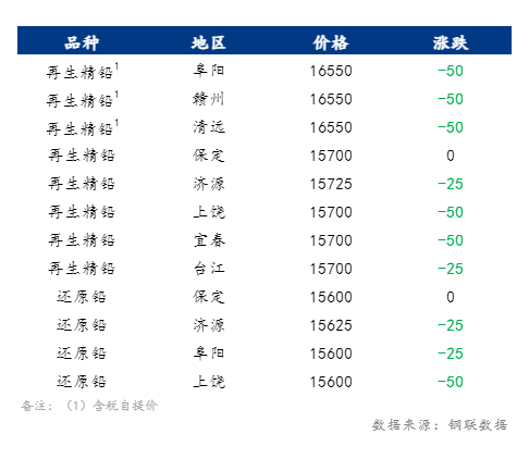 1月10日,铅价偏弱运行,再生铅价格下调25-100元/吨不等,其中市场还原铅价报15600-15625元/吨,再生精铅价格报15700-15725元/吨出厂,再生精铅报价坚挺,维持含税升水报价,价格集中报16550元/吨出厂。