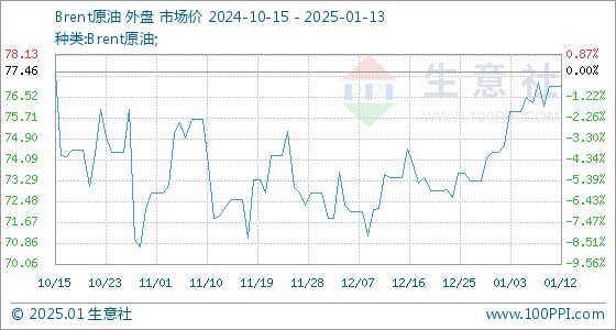 1月13日生意社Brent原油基准价为76.92美元/桶