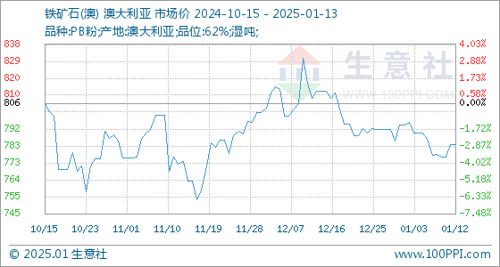 1月13日生意社铁矿石(澳)基准价为783.78元/吨