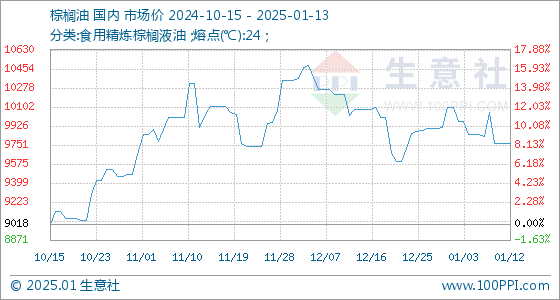 1月13日生意社棕榈油基准价为9762.00元/吨