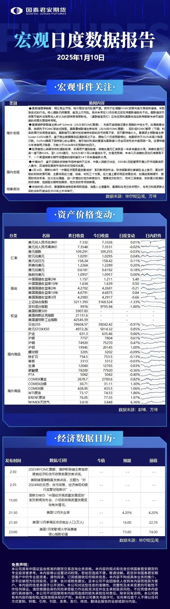 今日重点关注:原油、铜、豆粕、合成橡胶。美国12月非农新增就业数据大超预期