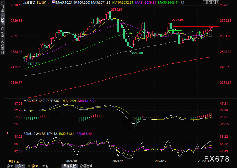 汇通财经APP讯——周一(1月13日)亚市早盘,现货黄金守在近四周高位,目前交投于2690美元/盎司。金价上周五延续涨势,最高触及2697.87美元/盎司,为12月12日以来新高,收报2689.13美元/盎司,原因是特朗普新政府政策的不确定性提升了避险吸引力,即使强于预期的美国就业数据强化了美联储今年可能不会大刀阔斧降息的预期。