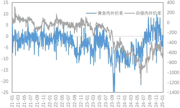 近期人民币汇率影响较前期增强,上周黄金白银内外价差有所回升;内外比价同样有所回升。