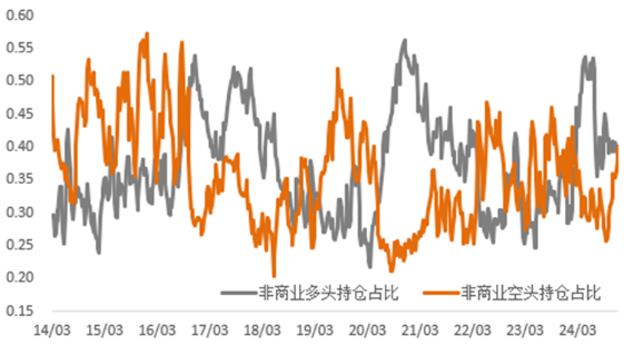 持仓方面,从CFTC持仓来看,上周非商业空头占比继续增加,目前空头持仓占比回到了相对中性偏高的水平,考虑到价格已经反弹,空头占比可能已经下降。