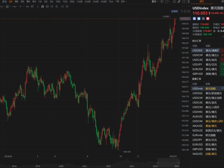 美元指数上破110关口,为2022年11月以来首次,日内涨0.38%