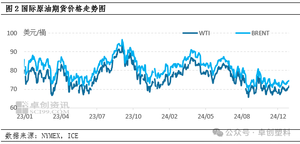 成本端原油方面,宏观上美联储降息为主,沙特延长减产且严格执行,中国政策持续发力,油价将波动运行为主,月均价预计有所上移,对茂金属成本端稍有支撑。国产供应方面,国内石化预计将仅有大庆石化和兰州石化继续稳定排产茂金属产品,且兰州石化6万吨/年老全密度装置存有检修计划,因此国产供应量将有所减少;进口供应方面,受美金盘及美元汇率高位影响,贸易商接盘意愿有所降低,但据了解1月将有部分前期延期的远洋货物陆续到港,另有2月份也将有部分前期接盘货源存集中到港预期,供应端压力将有所加大;需求方面,1月各地地膜需求跟进,但1月底适逢春节,工厂或有加快生产储备情况,但其中茂金属用量较少,带动较为有限,其他下游行业难寻需求亮点,开工情况预计维持弱稳,节前对原料囤货意向偏弱,坚持刚需为主,2月份春棚和地膜订单预计都将有所跟进,但月初仍处春节假期,需求陆续恢复,工厂开工提升或较为缓慢,3月份地膜行业将进入传统需求旺季,部分西瓜棚膜需求有阶段性跟进,但整体订单跟进有限,其他下游行业无较好需求点支撑,开工情况预计变动不大,对原料端难起有效支撑。综合来看,供需矛盾加剧,2025年一季度茂金属价格或弱势难改。