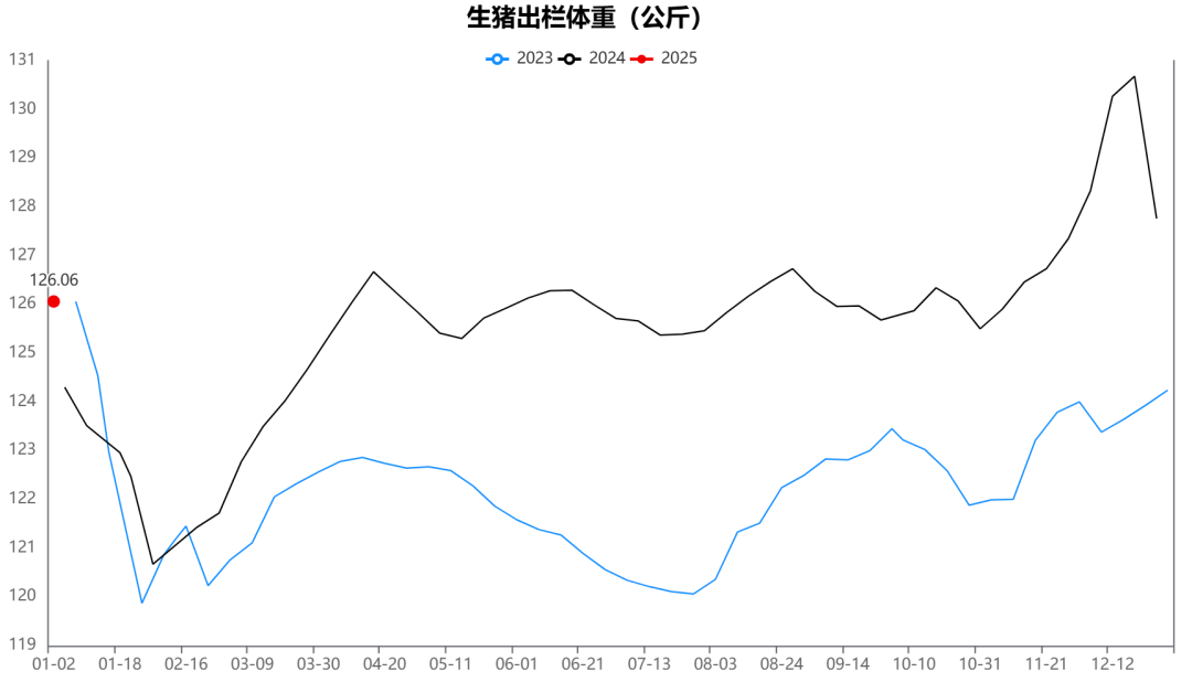冬至后受缩量出栏和二育进场等因素影响,猪价震荡走高,涌益咨询数据显示,1月6日全国生猪出栏均价16.36元/公斤,较冬至猪价涨幅约8%。在出栏体重已降至低位和现货震荡走高的背景下,冬至后LH2503合约偏强运行,具体原因如下: