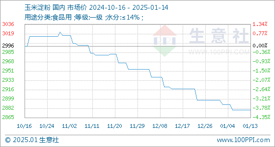 1月14日生意社玉米淀粉基准价为2880.00元/吨