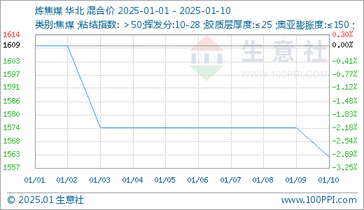 本周炼焦煤市场偏弱下行。据生意社监测系统显示,截止1月10日,生意社炼焦煤价格指数在1609.75元/吨,较月初下降-2.95%。