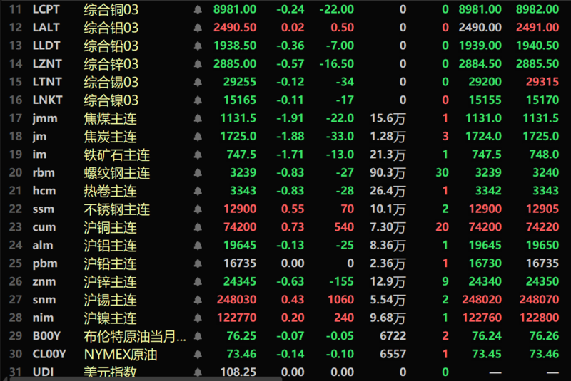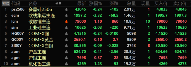 金属普跌工业硅、双焦跌幅居前碳酸锂涨1.1%欧线集运跌超3%【SMM午评】