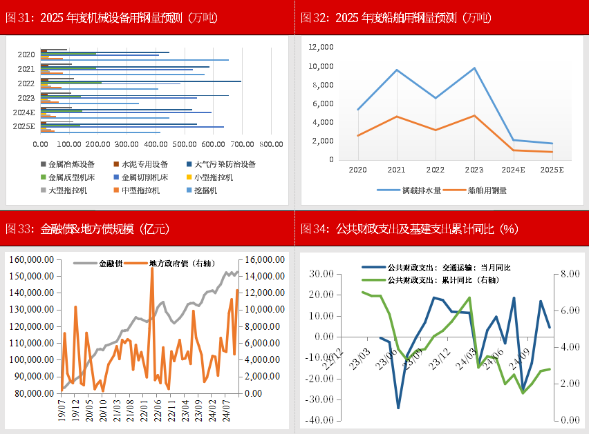 基建对钢材需求的拉动作用与财政发债的进度和强度强相关,根据会议定调,2025年货币和财政政策持续发力。