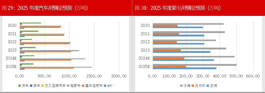 制造因细分领域的不同,对2025年钢材需求拉动作用各异,汽车和家电偏强,机械和船舶偏弱。