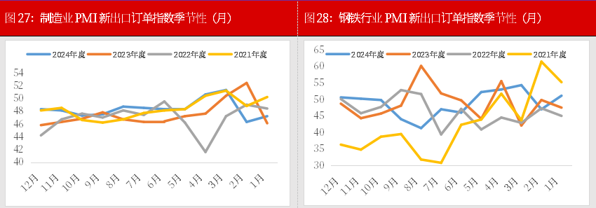 制造业PMI新出口订单指数和钢铁行业PMI新出口订单指数处于近几年中性偏高水平,2025年如果不考虑关税影响,有望维持相对强势状态,1亿吨左右的全年钢材出口量有望延续。