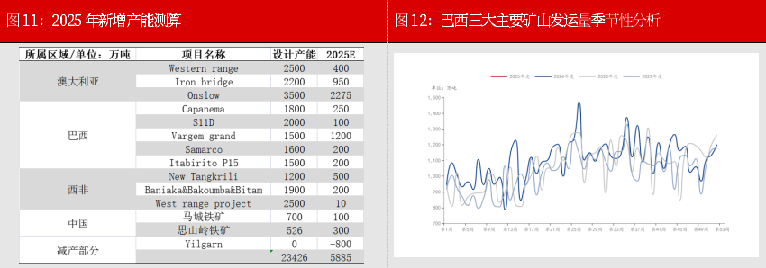 2025年产能增速有望进一步加快,根据海内外矿山投产周期和产能粗略估算,2025年铁矿石供应增量接近6000万吨,同比2024年增加1000万吨。