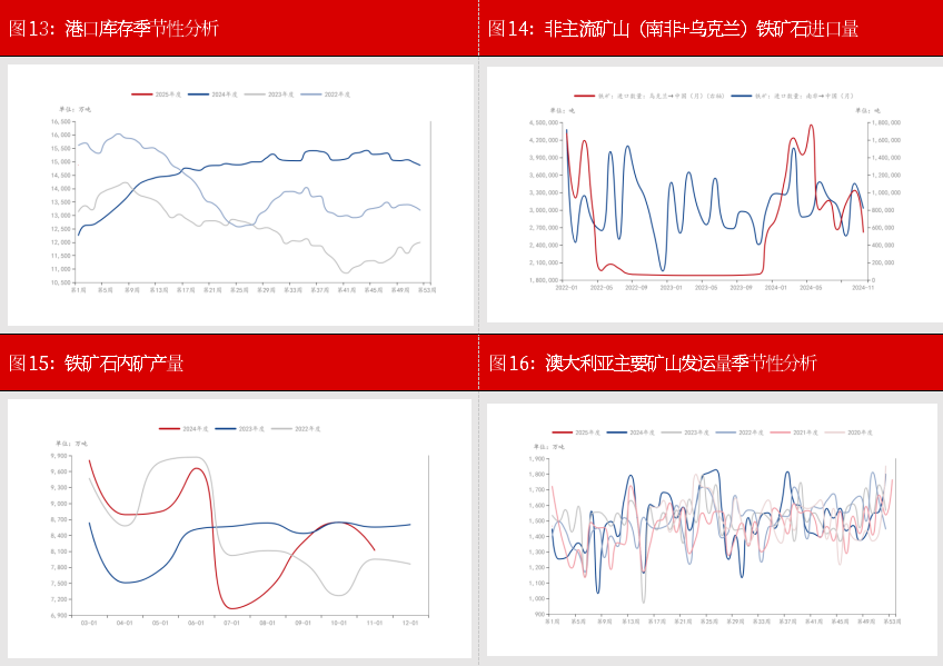 此外,双焦由于完成生产指标的要求,11、12月仍在持续增产,铁矿石在三季度就已奠定年终累库的格局。