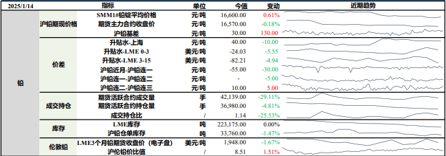1.SMM 调研显示,截至1月13日,SMM铅锭五地库存总量4.76万吨,较1月6日减少600吨,较1月9日增加0.17万吨。