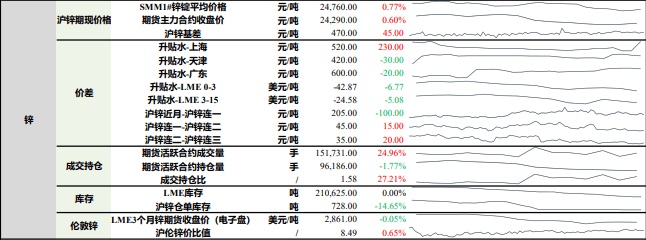 上一交易日SMM1#锌锭平均价较前日上涨0.77%,沪锌主力合约收涨0.60%。上海地区锌锭升水较前日上涨230元/吨至520元/ 吨;天津地区锌锭升水较前日下跌30元/吨至420元/吨;广东地区锌锭升水较前日下跌20元/吨至600元/吨。