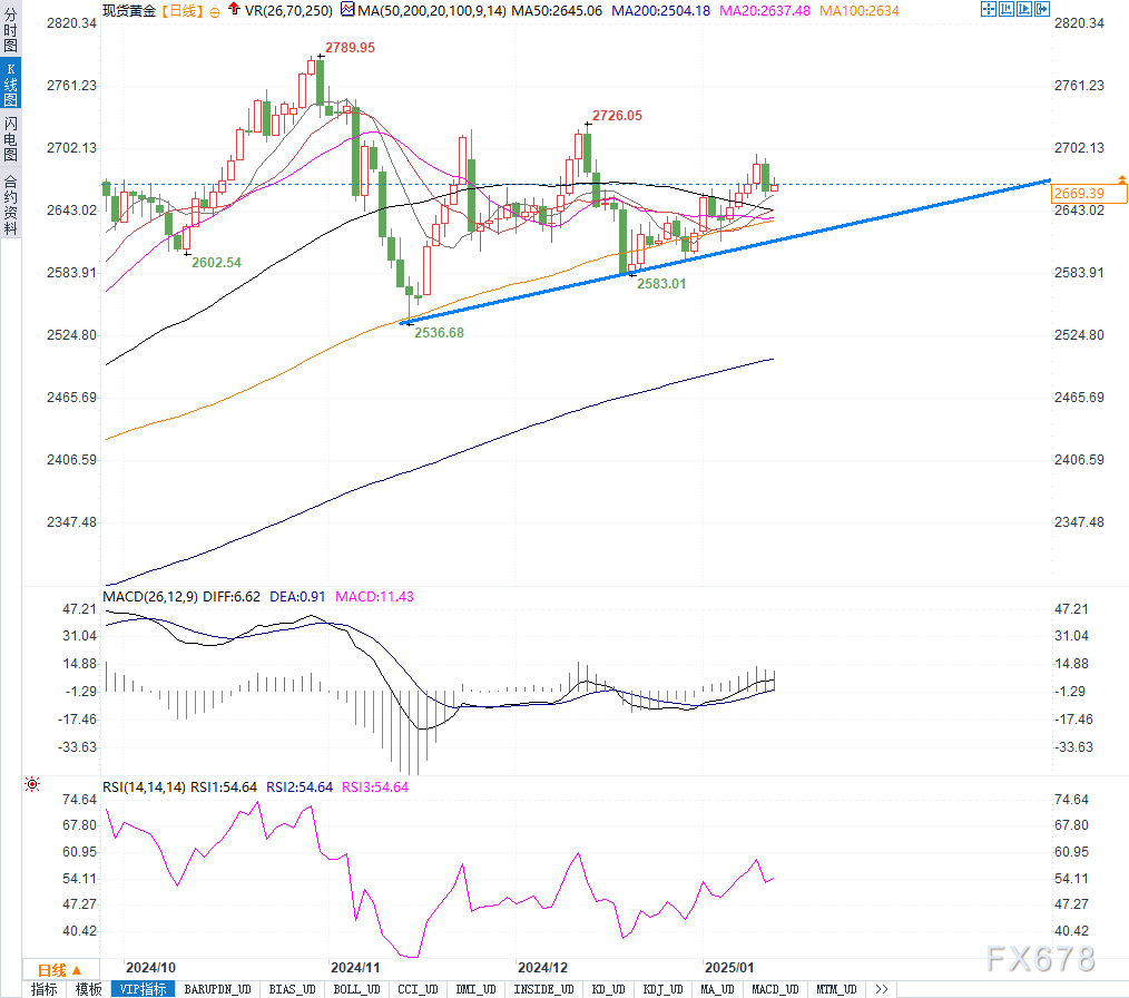 从技术角度来看,黄金价格在突破2676-2677美元区域后,将面临2690美元附近的初步阻力,并可能进一步测试2700美元关口。如果价格能够持续突破上述水平,则可能为延续三周以来的上涨趋势奠定基础,目标指向2716-2717美元阻力区域,甚至挑战12月的月度高点2726美元。
