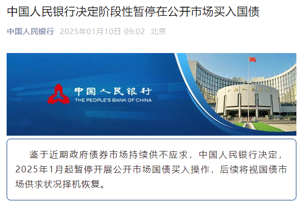 1月10日,中国人民银行公告,2025年1月起暂停开展公开市场国债买入操作。一纸公告引发关注。