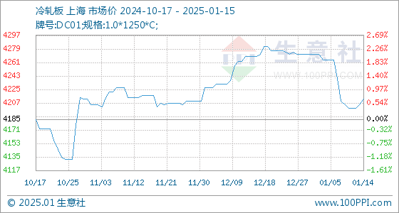 1月15日生意社冷轧板基准价为4212.50元/吨