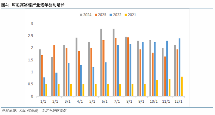 与此相对照,印尼镍矿石2024年产量为2.15亿吨,并创纪录进口了菲律宾镍矿石以补充国内不足。据印尼公布数据,印尼镍矿进口量在2024年前10个月飙升至930万吨,是2023年同期16.1917万吨的50多倍。2025年,在印尼收紧配额的情况下,预计印尼自菲律宾进口镍矿石的动力将依然存在。