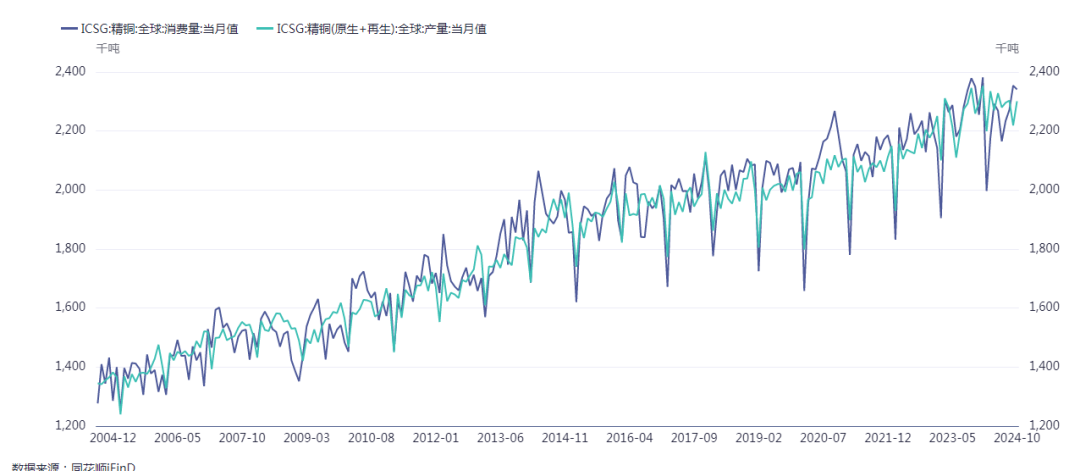 全球铜矿供应:总体相对平稳,2024 年铜矿产量预计2276万金属吨,同比增长1.8% ,这是这几年供应增长最多的年份,虽然矿端供应扰动频发,如第一量子Cobre铜矿关停等事件。