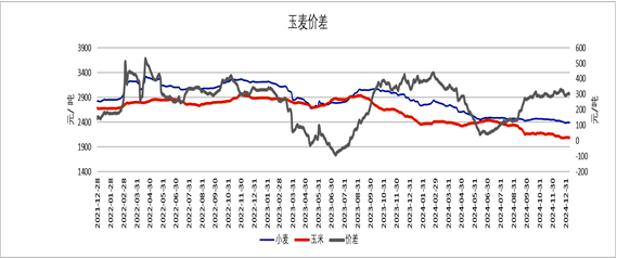 图1:近年小麦、玉米价差变化情况(单位:元/吨)