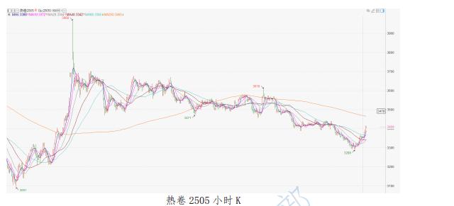 期货方面:螺纹钢主力 RB2505 开盘 3249 元/吨,收盘于 3283 元/吨,+48 元/吨,涨跌幅+1.48%;热卷主力开盘 3357 元/吨,收盘于 3409 元/吨,+65 元/吨,涨跌幅+1.94%。