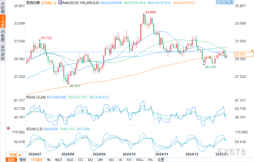汇通财经APP讯——周三(1月15日)欧盘时段,银价走高,略高于关键的200日移动均线29.97美元。该水平是市场的关键阻力位,突破该水平可能引发新的买入兴趣。29.97美元之后,下一个目标位于30.54美元,即50日移动均线与短期轴心点相交的位置。