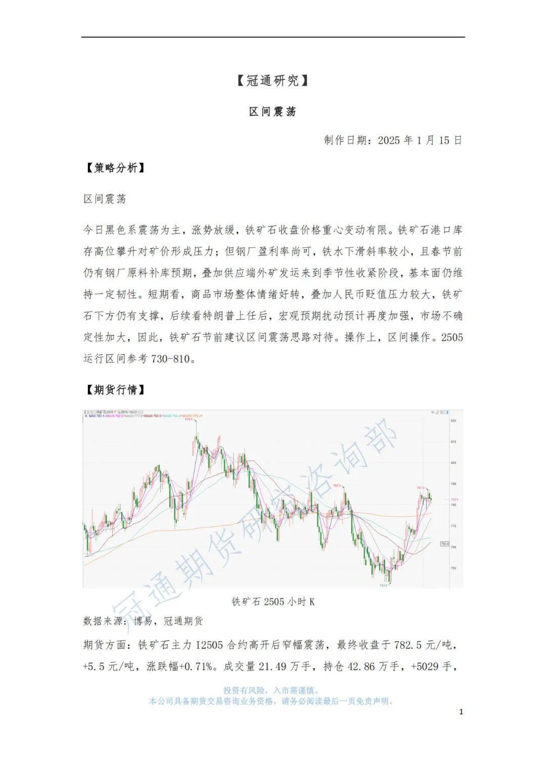 冠通研究--铁矿石策略:区间震荡