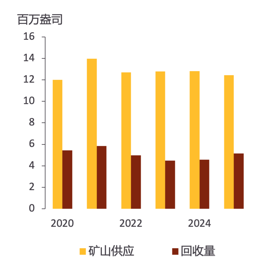 铂族矿山供应与回收供应量