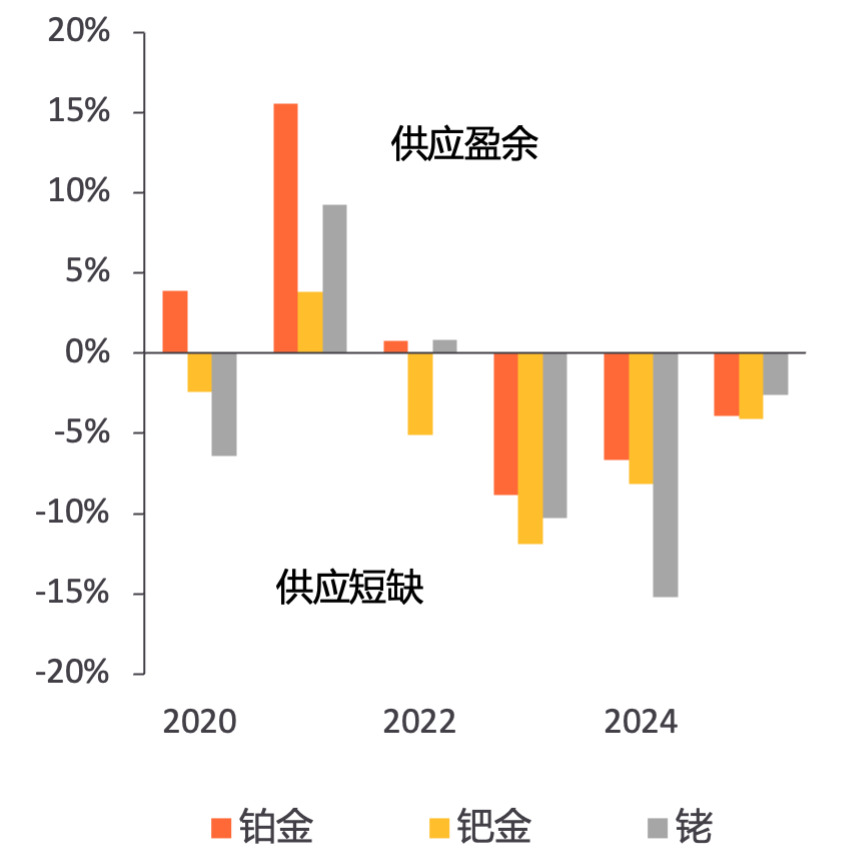 铂族市场供需平衡相对需求占比