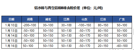 1月16日A00铝锭现货价华东20190,涨170;华南20220,涨190;中原20080,涨140(单位:元/吨)。下游基本放假,市场需求支撑不在,再生铝棒企业陆续停产盘点检修,供需双弱。再生棒厂目前以出售场内库存为主,今日再生铝棒价格上涨50-100元/吨。