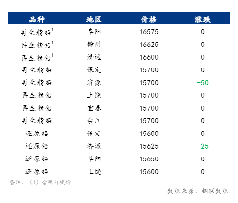 安徽、江西、贵州、湖南、广东市场部分企业以长单交付为主,散单未有报价,反映下游需求备库基本结束。