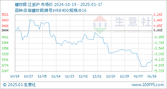 1月17日生意社螺纹钢基准价为3302.86元/吨
