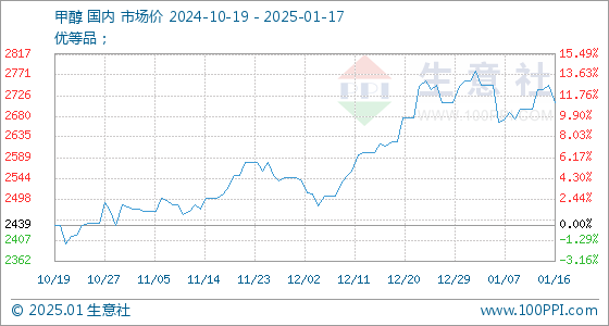 1月17日生意社甲醇基准价为2710.00元/吨