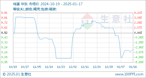 1月17日生意社鸡蛋基准价为9.20元/公斤