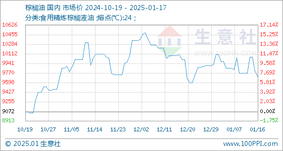 1月17日生意社棕榈油基准价为9690.00元/吨