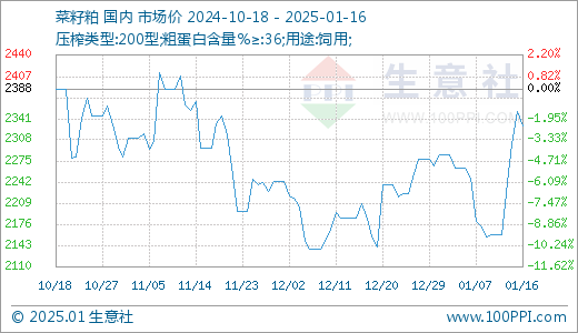 01月19日菜籽粕2350.00元/吨10天上涨8.96%