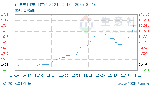 01月16日石油焦1753.25元/吨5天上涨5.62%