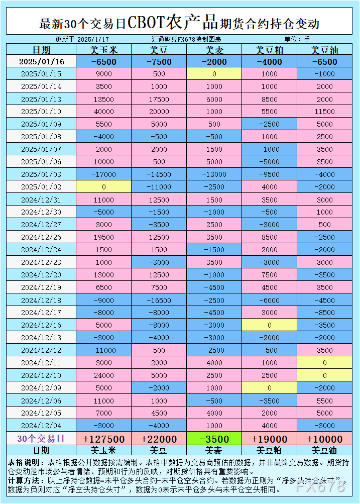 汇通财经APP讯——周五(1月17日),CBOT谷物期货市场继续受到国际交易动向、基差变化及持仓调整的影响。近期数据表明,投机性资金在多个品种上的仓位出现明显转向,这将对市场走势产生深远影响。以下是对主要品种的分析。