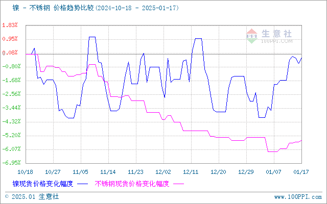 据生意社价差分析工具显示,镍和不锈钢价格基本相似,最近镍和不锈钢价格小幅上涨。