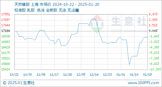 1月20日生意社天然橡胶基准价为16908.00元/吨