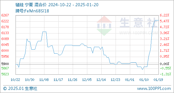 1月20日生意社锰硅基准价为6230.00元/吨