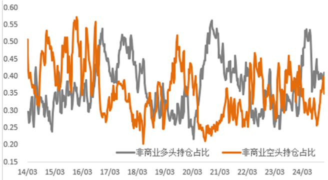 持仓方面,从CFTC持仓来看,上周非商业空头占比继续增加,目前空头持仓占比回到了相对中性偏高的水平,考虑到价格已经反弹,空头占比可能已经下降。