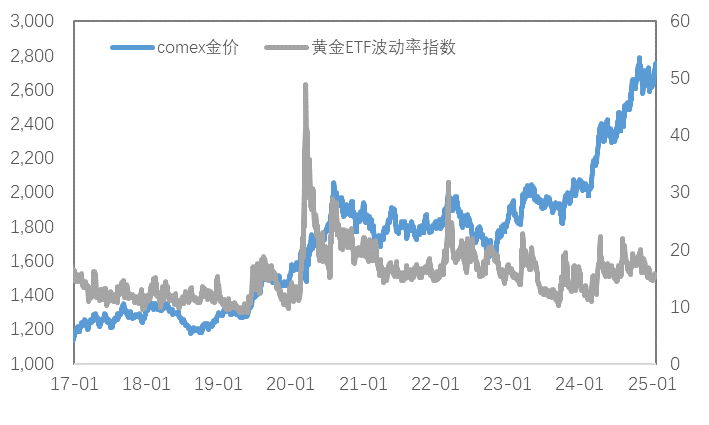 黄金VIX于小幅回落,避险需求较前期有所减弱。