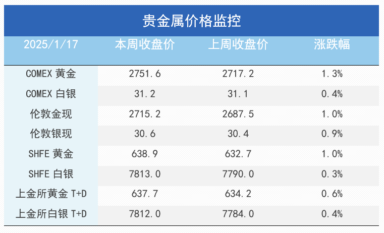 周内美国公布的PPI、核心CPI数据均低于市场预期,前期市场对于美国再通胀的交易有所放缓,随后联储官员表态提及降息的可能性,美联储三月降息概率由此上升,美元随之回落,金价进一步上行。对于特朗普上任后的政策以及美国的降息路径方面,不确定性仍较大,短期来看,金价的上行通道依然曲折。
