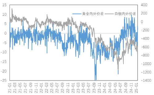 近期人民币汇率影响较前期增强,上周黄金白银内外价差有所回升;内外比价同样有所回升。