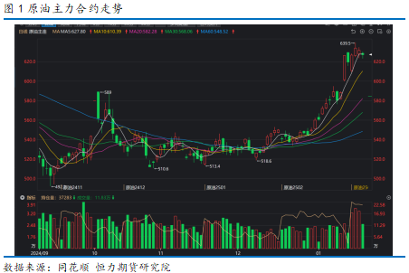 在拜登政府进一步扩大对俄罗斯石油生产商和油轮的制裁的影响下近期油价连续走强,本周盘面继续维持强势上涨行情,主力SC2503合约盘面价格更是在本周四(1/16日)达到639.5点的高位。